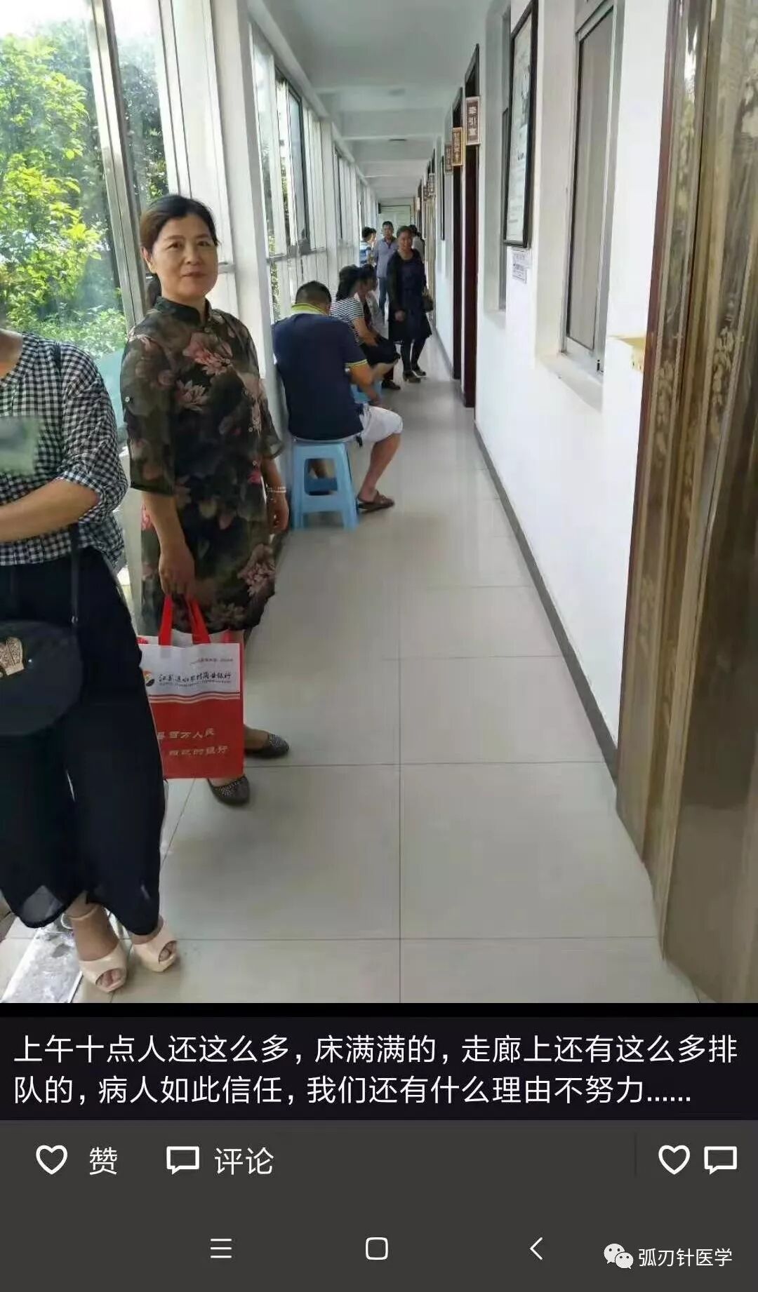 才六点十分,所有床位全满,看到科室门口这么多排队的人,深感自己辛苦不算什么,病人看病更辛苦的他,一边热情地和病人打招呼,一边准备投入紧张的工作。